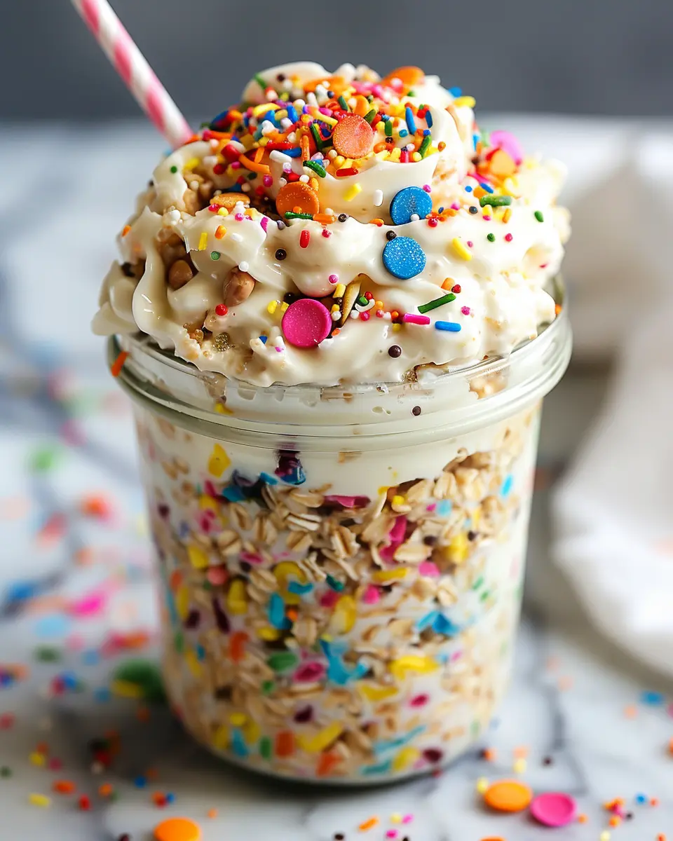 In conclusion, birthday cake overnight oats serve as a whimsical yet nutritious breakfast option that effortlessly combines the joy of sweets with wholesome ingredients. They’re perfect for busy mornings or even as a delightful midday snack. The versatility of this recipe allows you to customize with your favorite toppings, whether that’s fresh fruit or a sprinkle of coconut flakes.