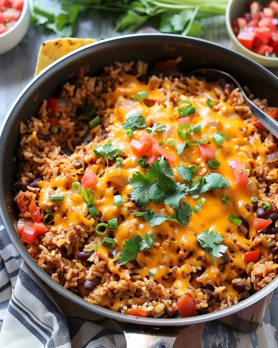 For those who crave a little extra flavor and texture, incorporating black beans and corn into your Cheesy Taco Rice Skillet is a game changer. The black beans add an impressive boost of protein and fiber, making your meal heartier. Simply mix in one can of drained black beans and a cup of sweet corn during the cooking process.