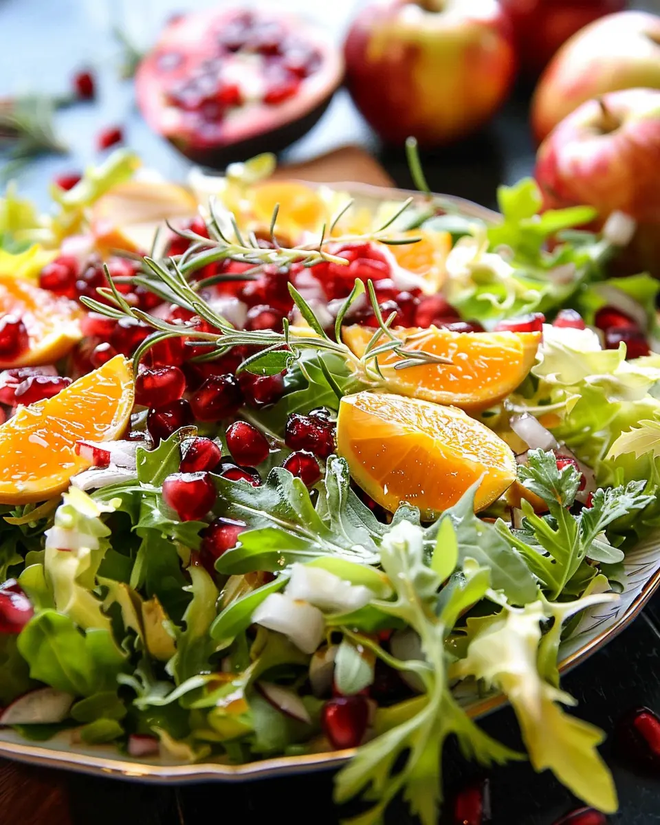 Serve immediately for the freshest taste, making sure to display this colorful dish prominently on your holiday table. The combination of flavors—the earthy crunch of nuts, the sweetness of fruits, and the zesty dressing—will captivate your guests and lift their spirits.