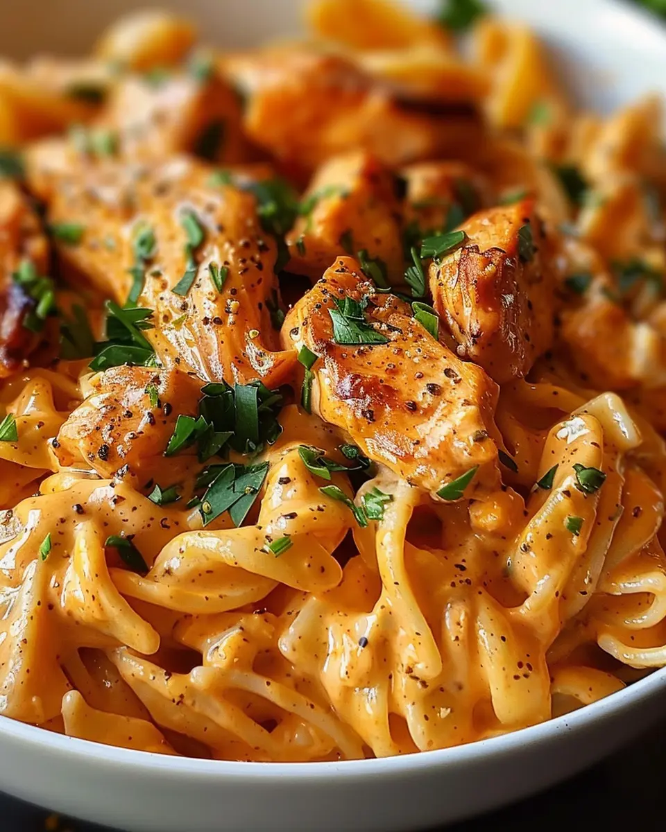Cooking Technique: Sear the chicken in a hot skillet for about 6-7 minutes per side. This will lock in the juices and enhance that irresistible buttery flavor coating the pasta.