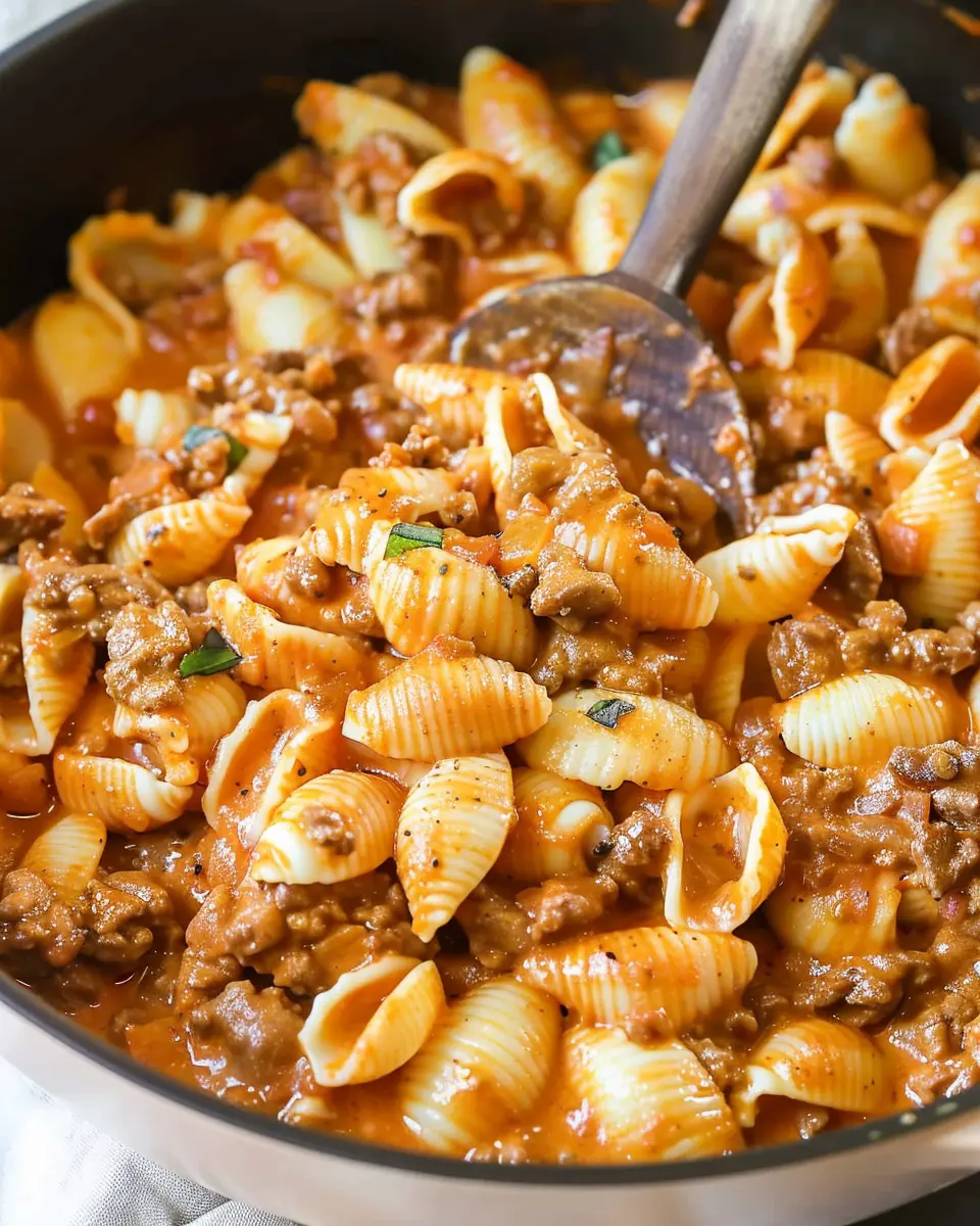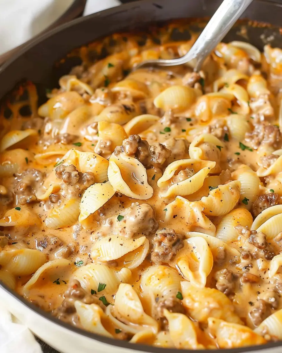 Finally, add the cooked shell pasta into the creamy beef mixture. Gently stir until the pasta is evenly coated and heated through. If you want, consider garnishing with freshly chopped parsley for a pop of color. And just like that, your creamy beef and shells are ready to be served!