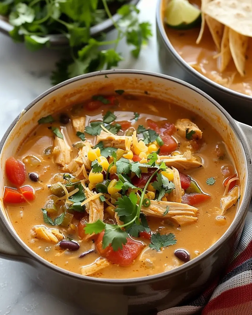 Experience the warmth and comfort of this creamy chicken tortilla soup, a delightful recipe that brings together tender chicken and fresh vegetables in a rich, flavorful broth.