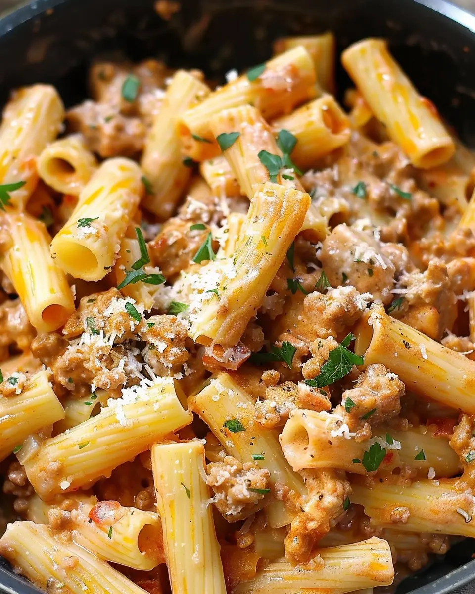 Enjoy a delightful and comforting meal with this creamy sausage rigatoni recipe, perfect for a quick weeknight dinner.