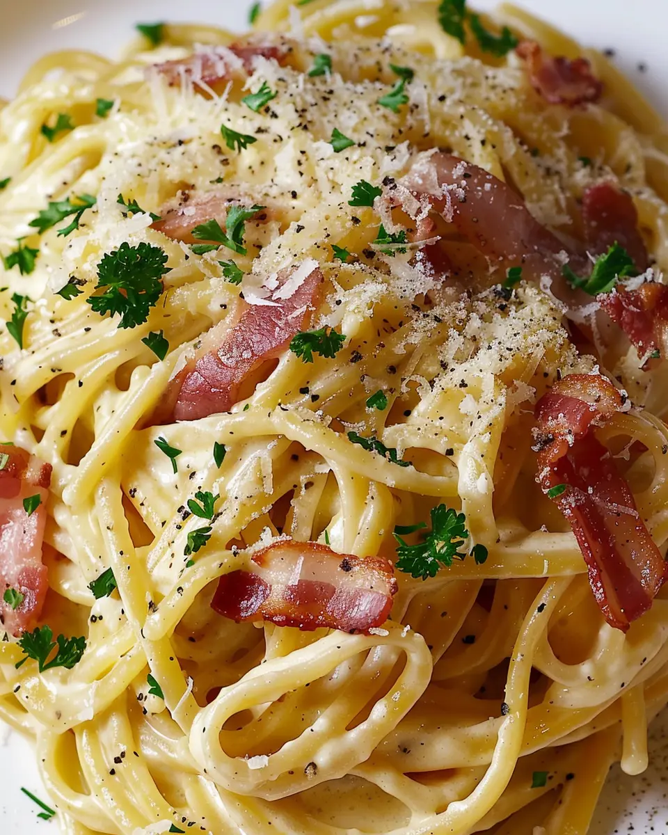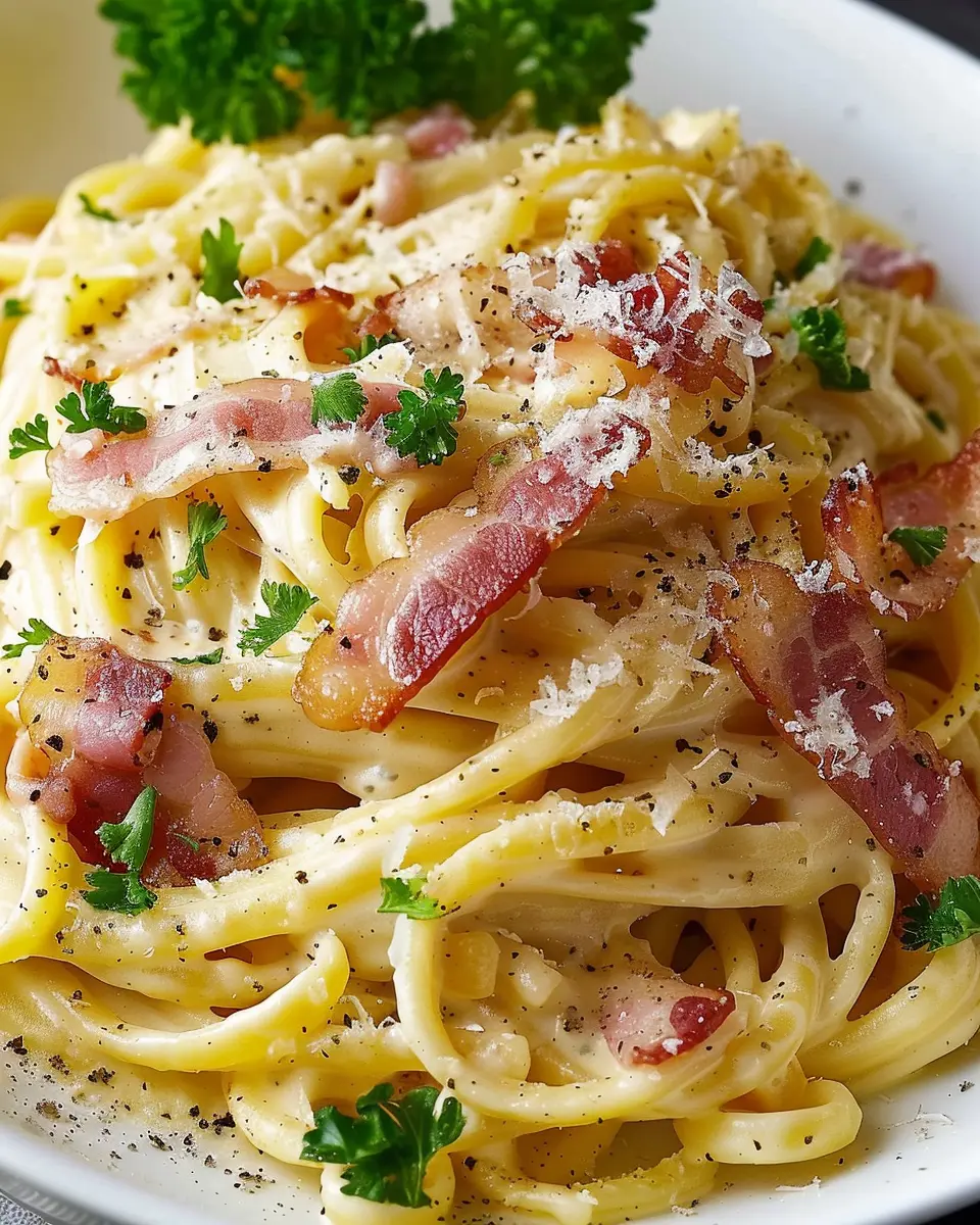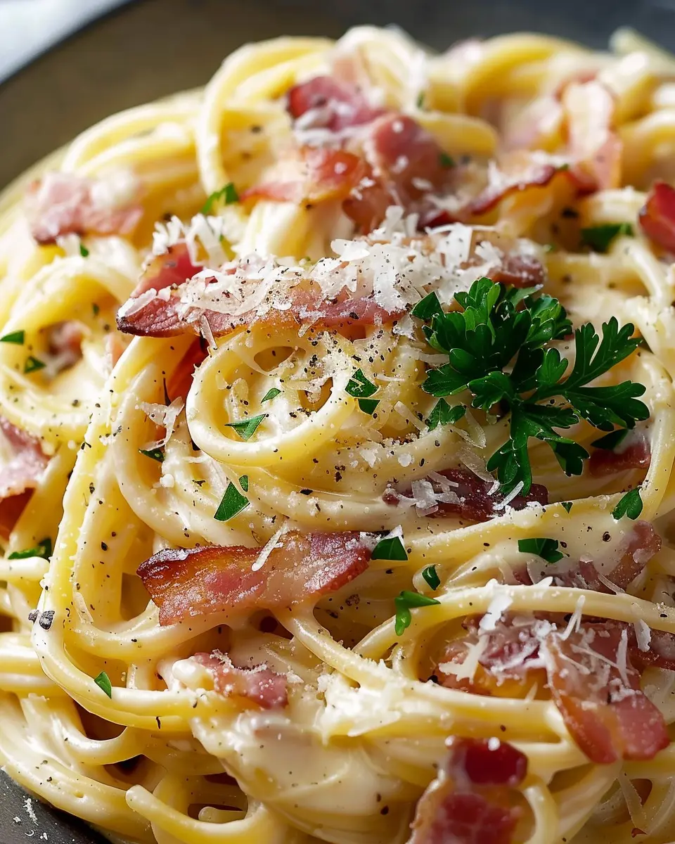 PrintCreamy Turkey Bacon Carbonara Pasta: An Indulgent Twist on a Classic