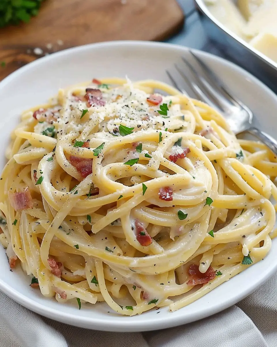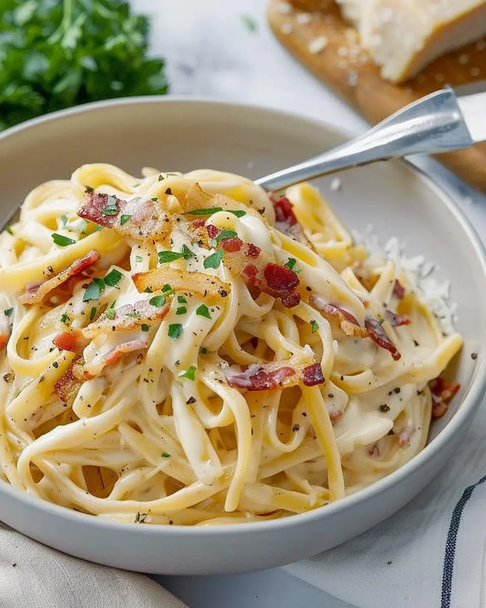 If you want to elevate your creamy bacon pasta even further, consider adding some fresh herbs like basil or spinach. These not only enhance the taste but also add a lovely pop of color.