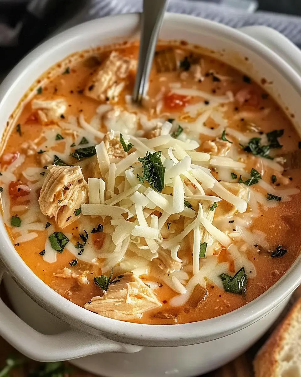 A comforting and creamy chicken parmesan soup made effortlessly in your crock pot.