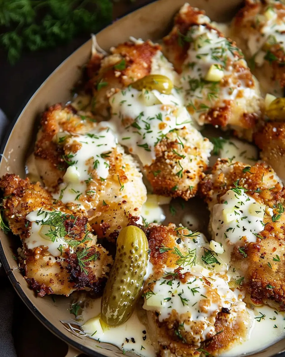Dill Pickle Parmesan Chicken is a quick and flavorful dish that combines the zesty flavor of dill pickles with the richness of Parmesan cheese, creating a delightful meal for any occasion.