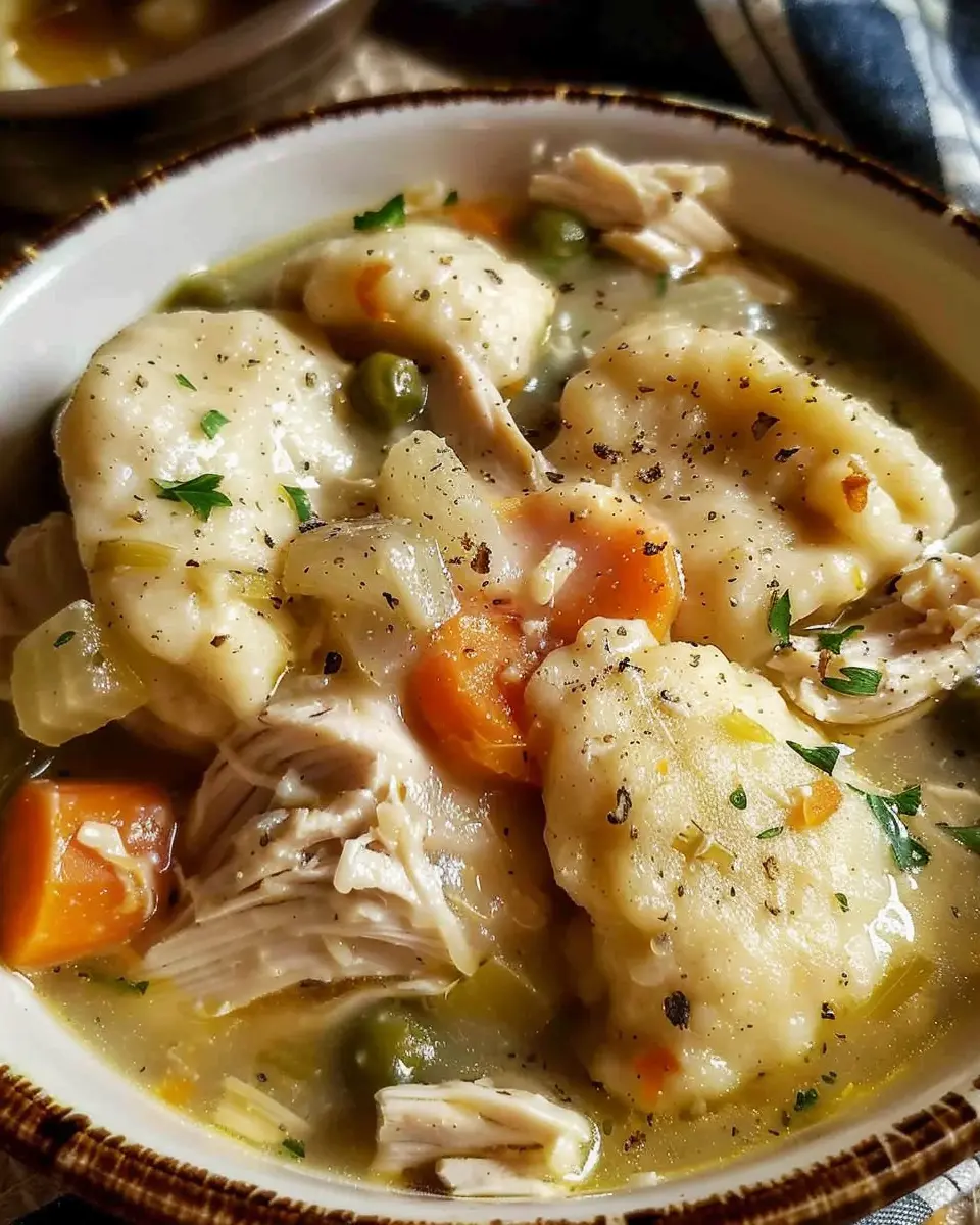 And voila! You’re now ready to serve this warm, comforting classic. It’s the perfect dish to share with loved ones or keep all for yourself—because who can resist a bowl of homemade chicken and dumplings on a cozy evening? Enjoy!
