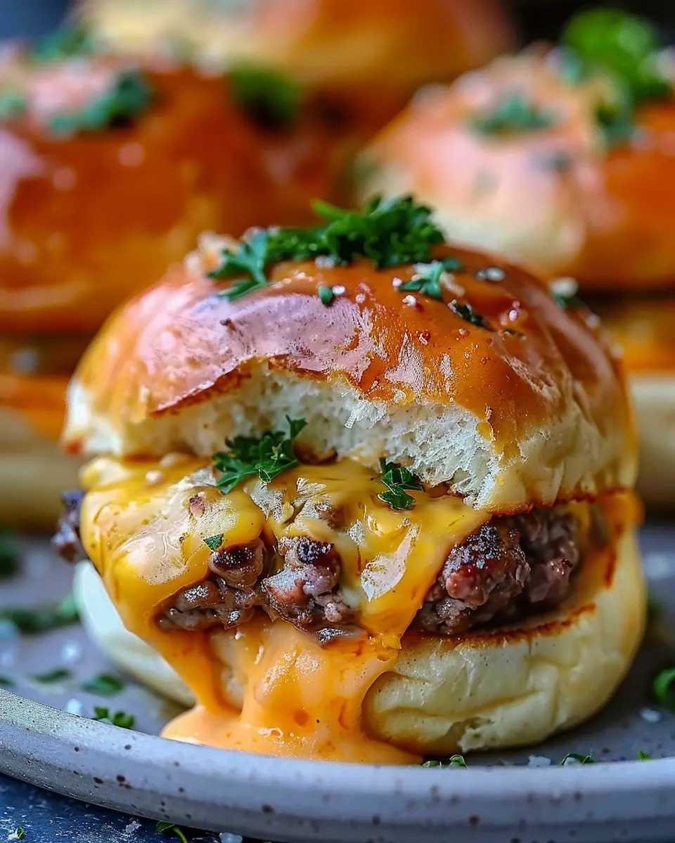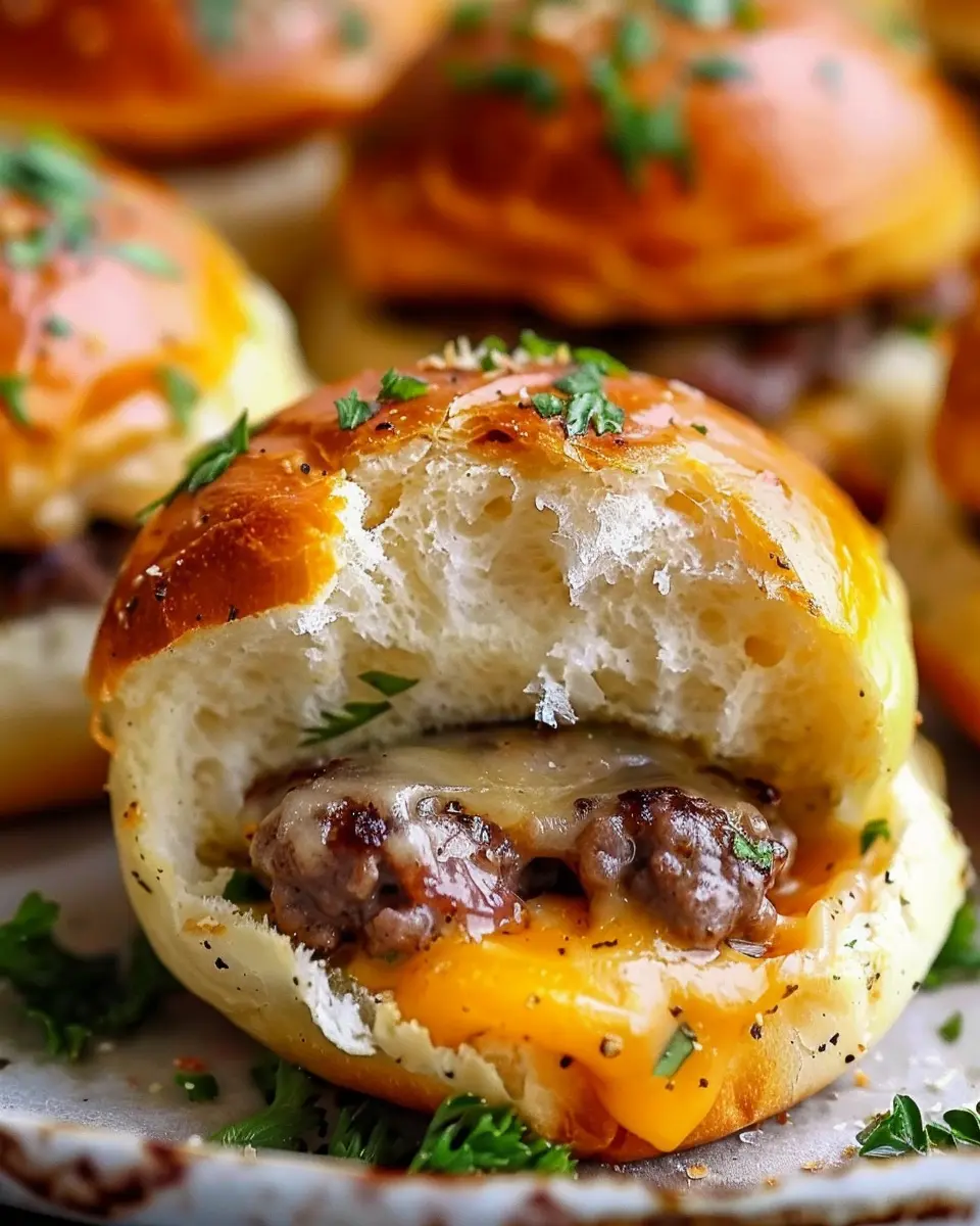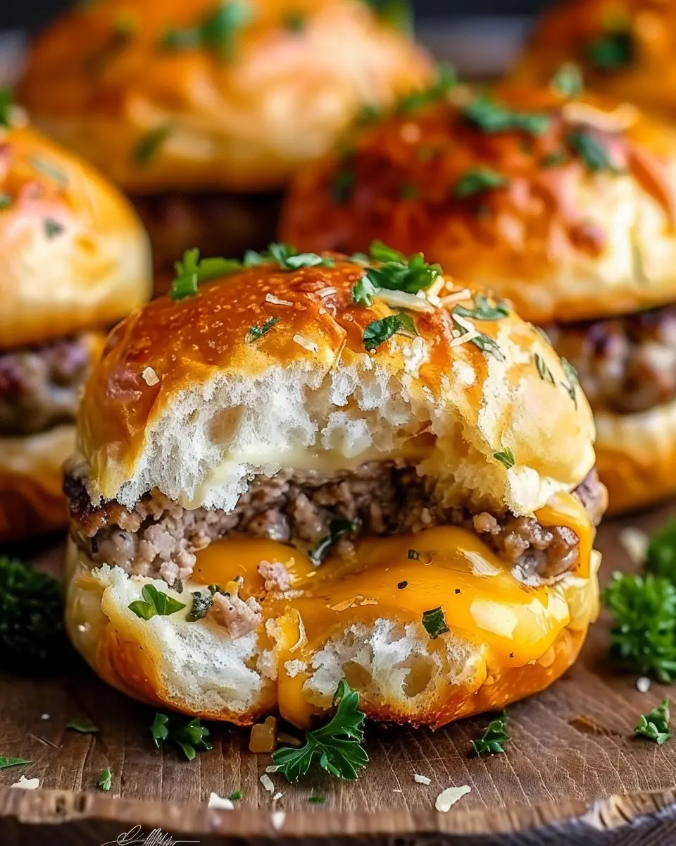 PrintGarlic Parmesan Cheeseburger Bombs Recipe: Indulgent Flavor Bliss