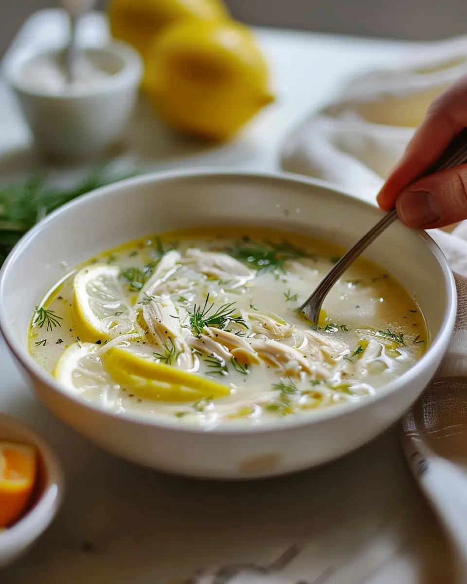 This step is what sets Greek Lemon Chicken Soup apartāletās talk about the avgolemono. In a bowl, whisk together 2 eggs and the juice of 1 lemon until frothy. Gradually add a few ladles of the hot soup into the egg mixture while whisking continuously. This process tempers the eggs so they donāt scramble when added to the pot. After whisking, slowly pour this mixture back into your soup pot while stirringāthis gives your soup a silky, rich texture.