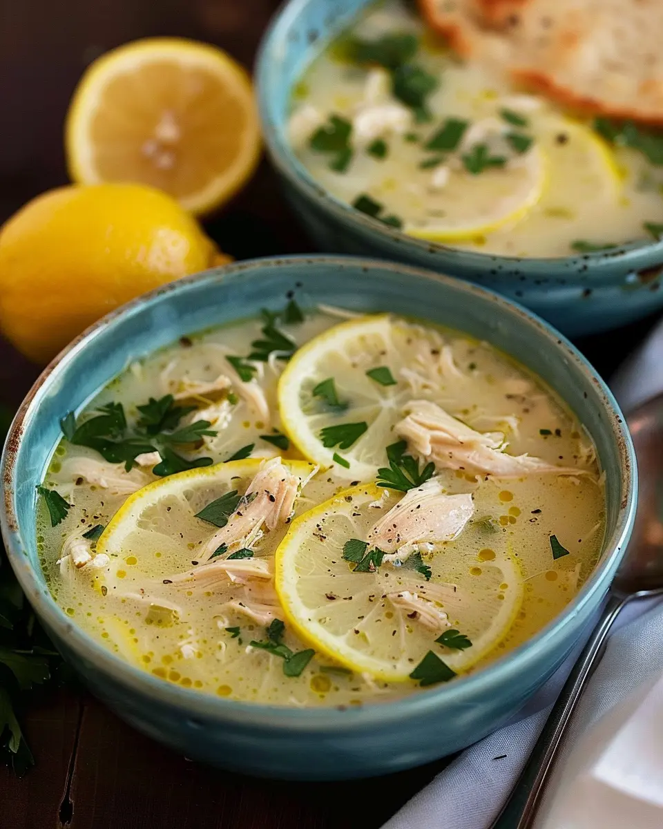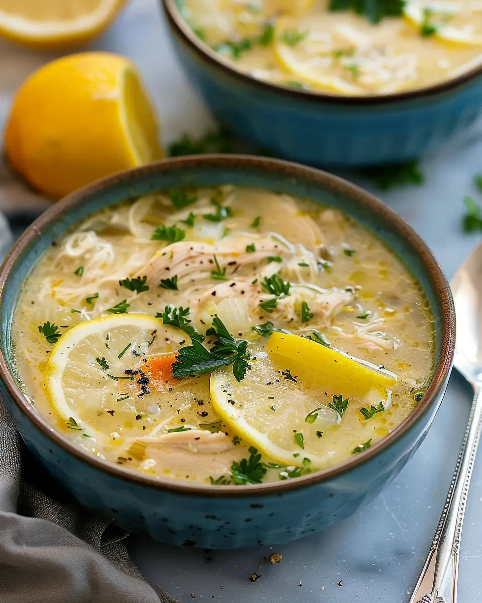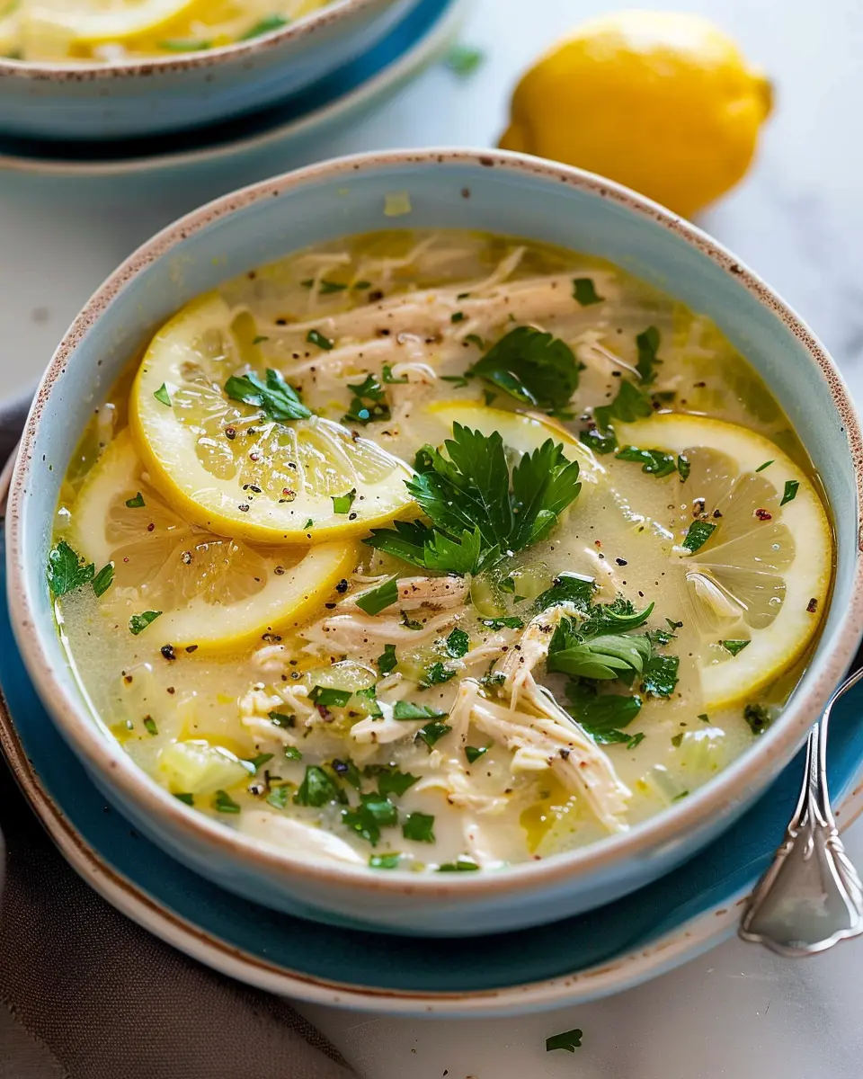 A delightful and refreshing soup combining tender chicken, bright lemon, and aromatic herbs.