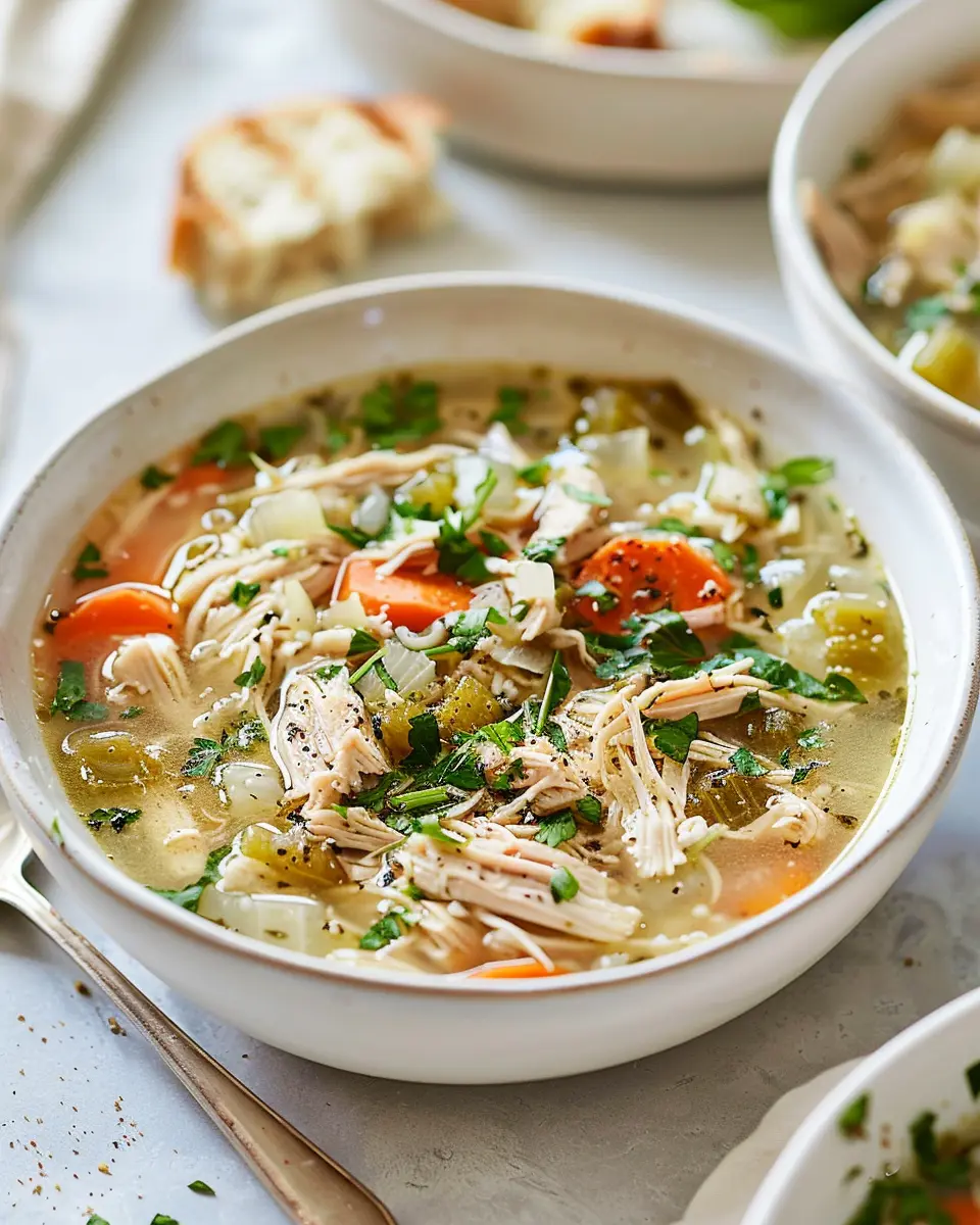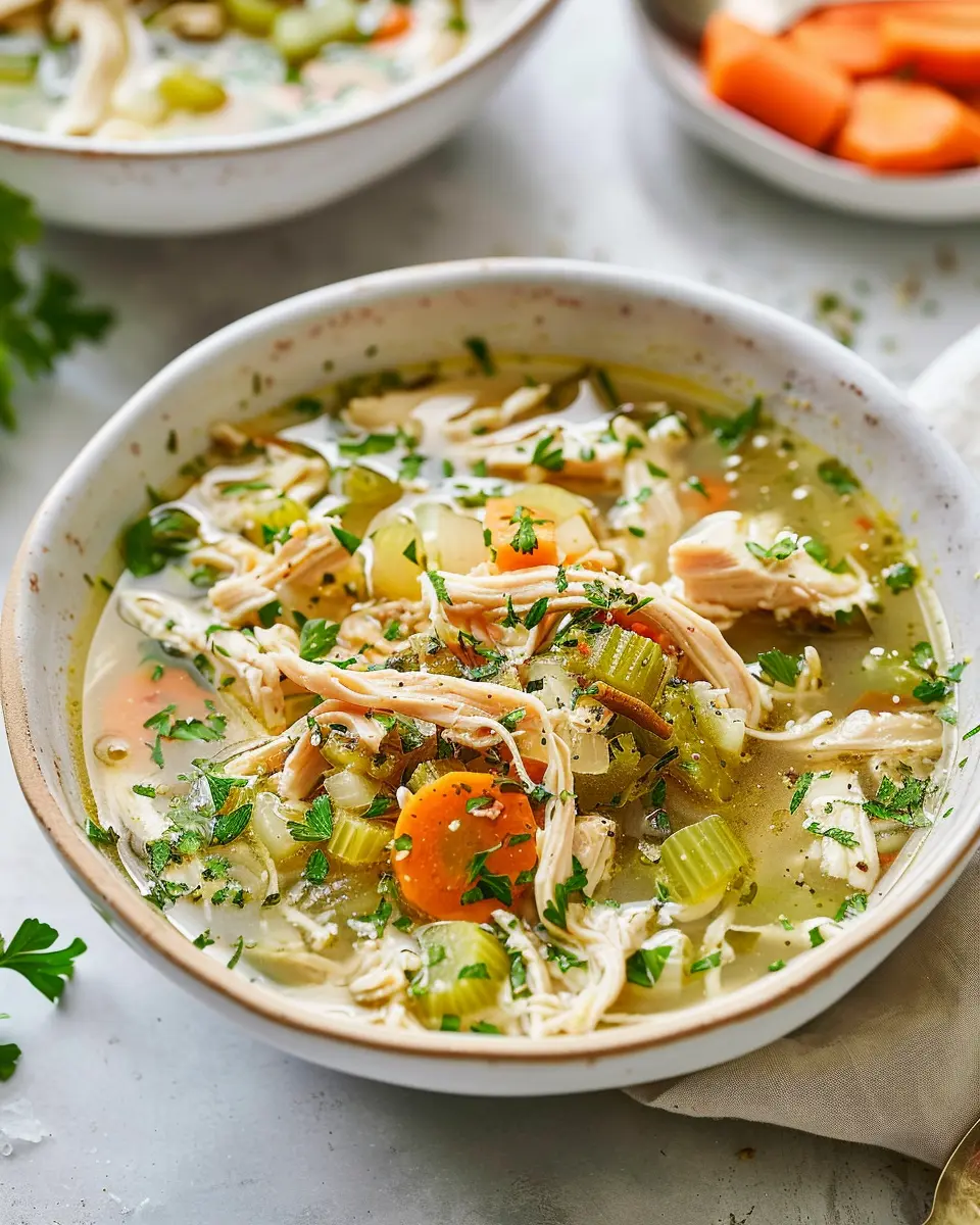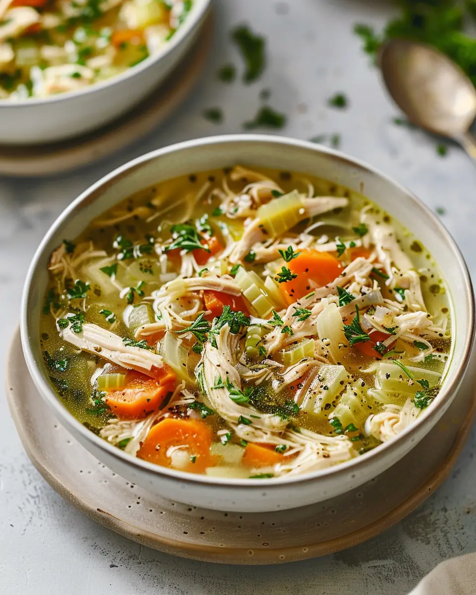 Presentation matters just as much as taste! To serve your healthy chicken soup beautifully: