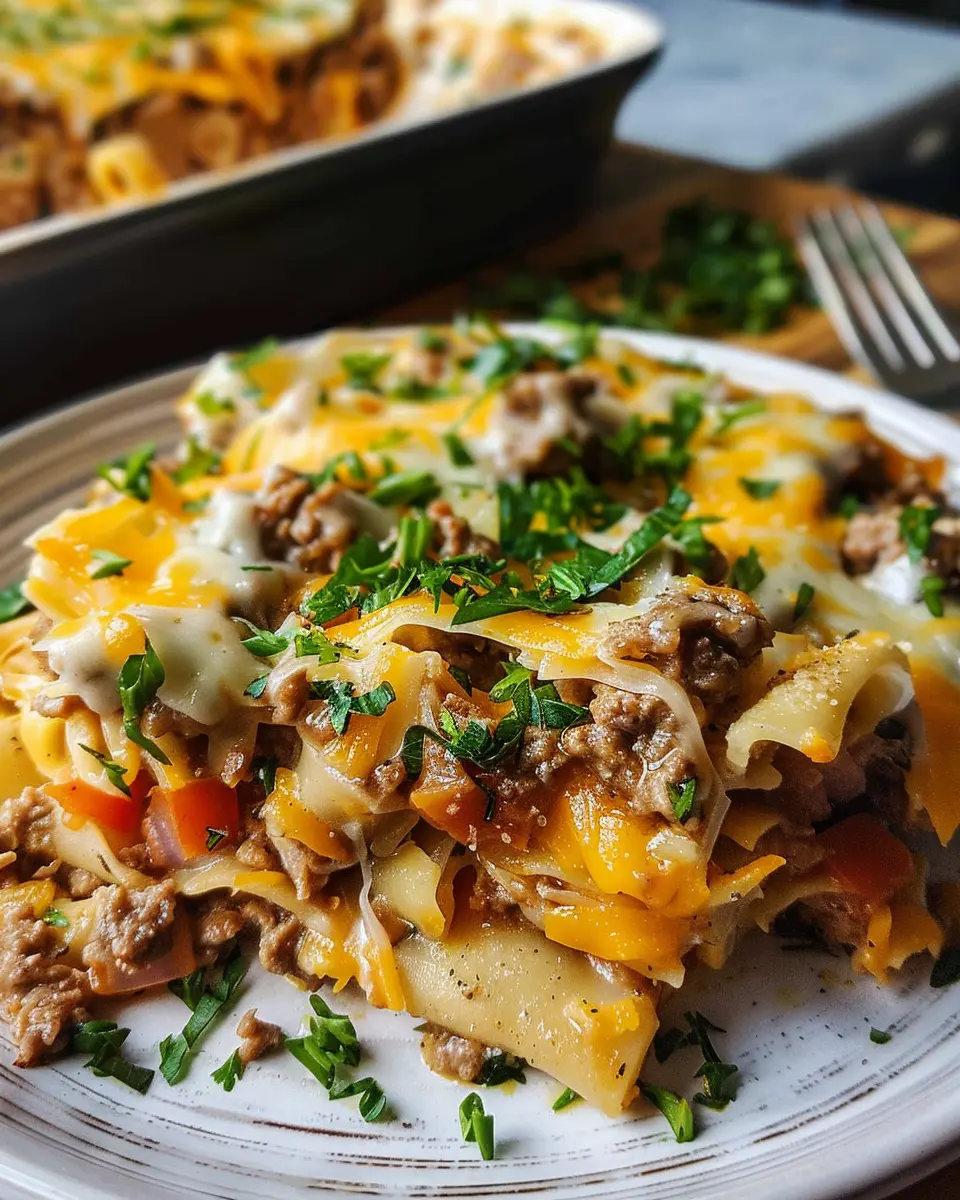 End with a generous sprinkle of shredded cheese on top. This is where the magic happens—when the cheese melts, it creates a gloriously cheesy crust that everyone will love. If you’re feeling adventurous, throw in some crushed crackers or breadcrumbs over the cheese for an extra crunch!