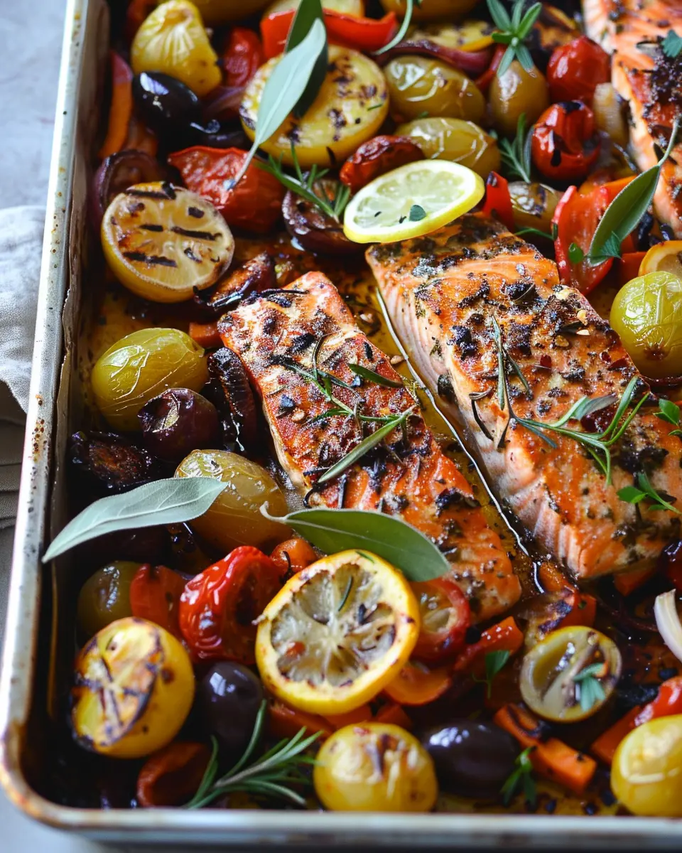 PrintMediterranean Salmon Sheet Pan: Easy and Flavorful Weeknight Dinner