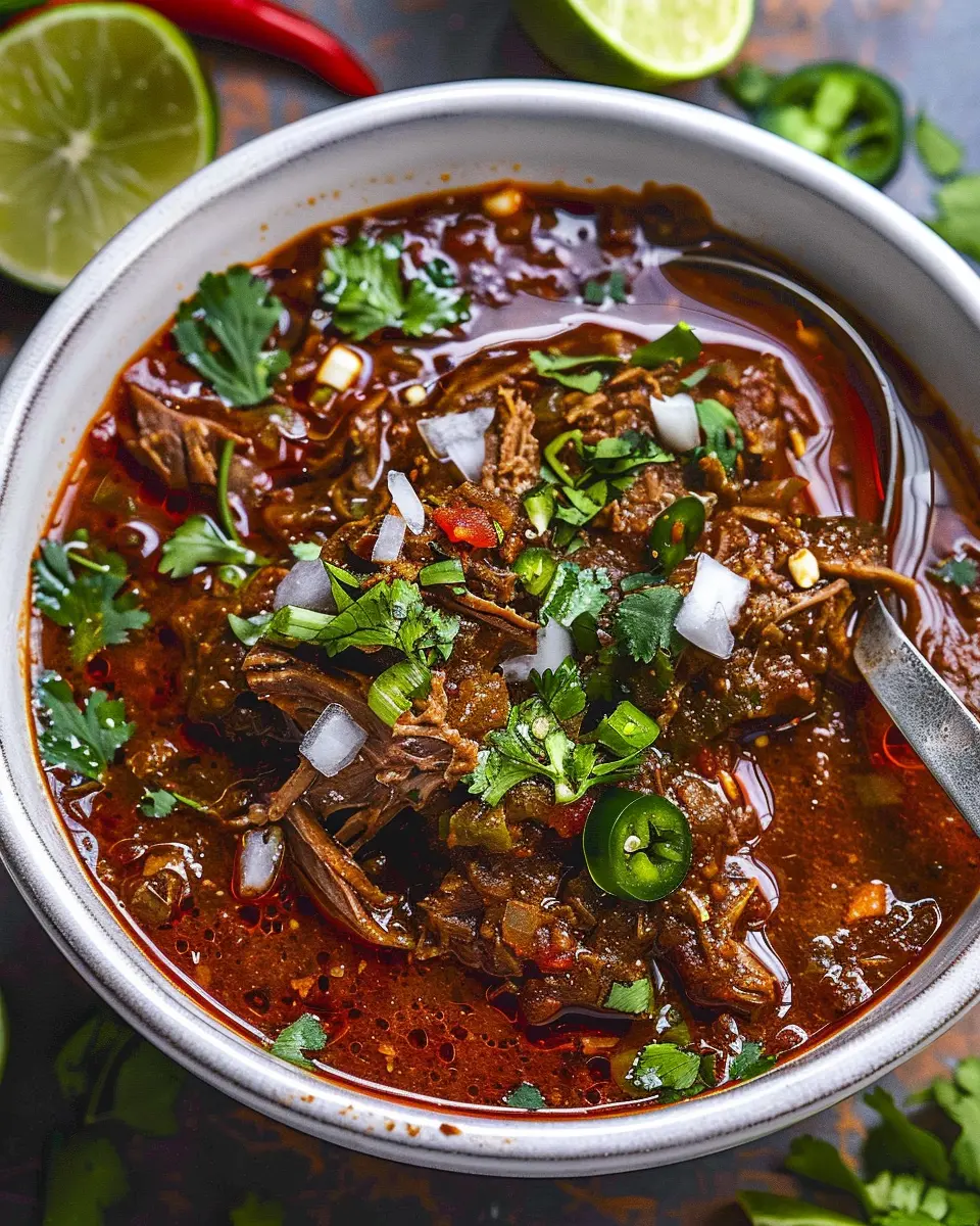 Imagine coming home after a long day, the scent of spices wafting through your kitchen. Just talking about it brings a warmth that instantly lifts your spirits, doesnāt it? Mexican Birria is designed to tick all the boxes: it’s savory, rich, and oh-so-satisfying. The secret lies in the slow cooking process. By simmering beef with an array of spices like cumin, oregano, and paprika, the meat becomes incredibly tender, almost falling apart at the fork. Each bite is enhanced by the flavorful broth, which often includes tomatoes and guajillo peppers, bathing the beef in a spicy, rich sauce.