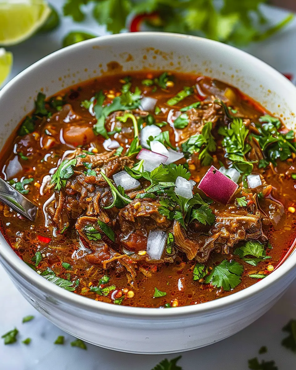 Serving Suggestions: Traditionally, birria is enjoyed with warm tortillas for dipping. Consider topping your dish with diced onions, fresh cilantro, and a squeeze of lime for an extra zing.