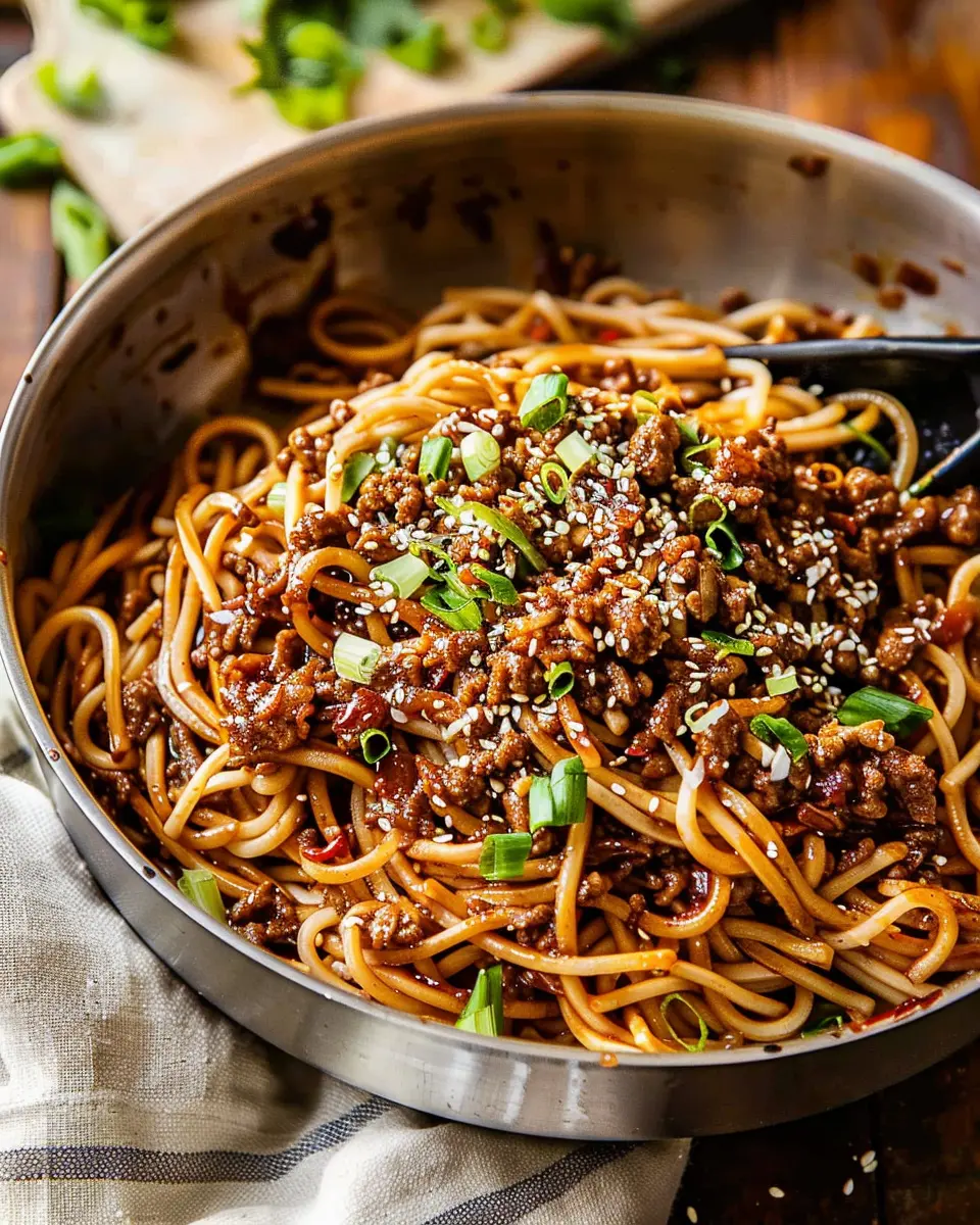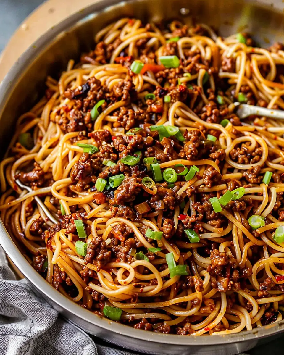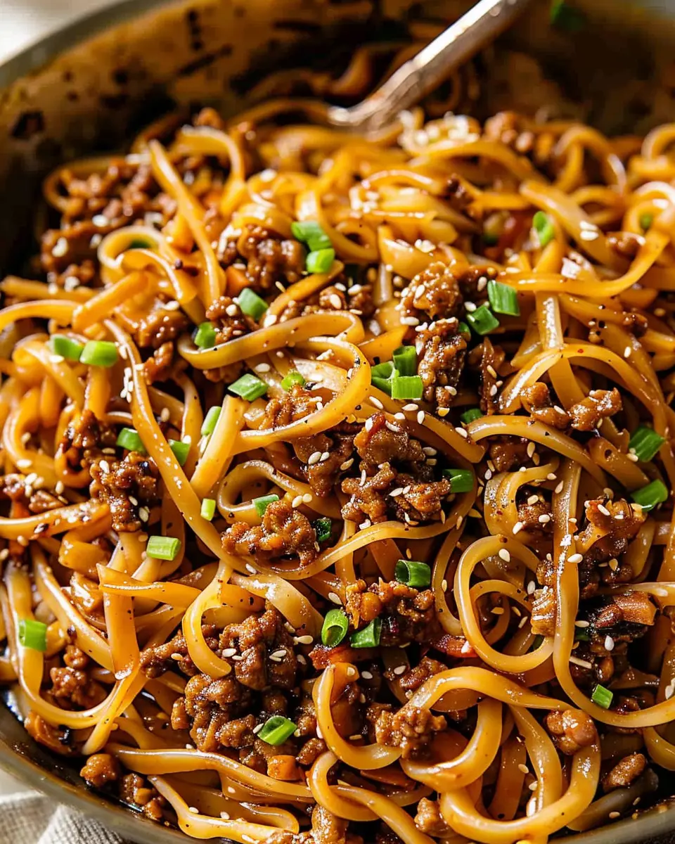 PrintMongolian Ground Beef Noodles: Easy Recipe for Flavor Lovers