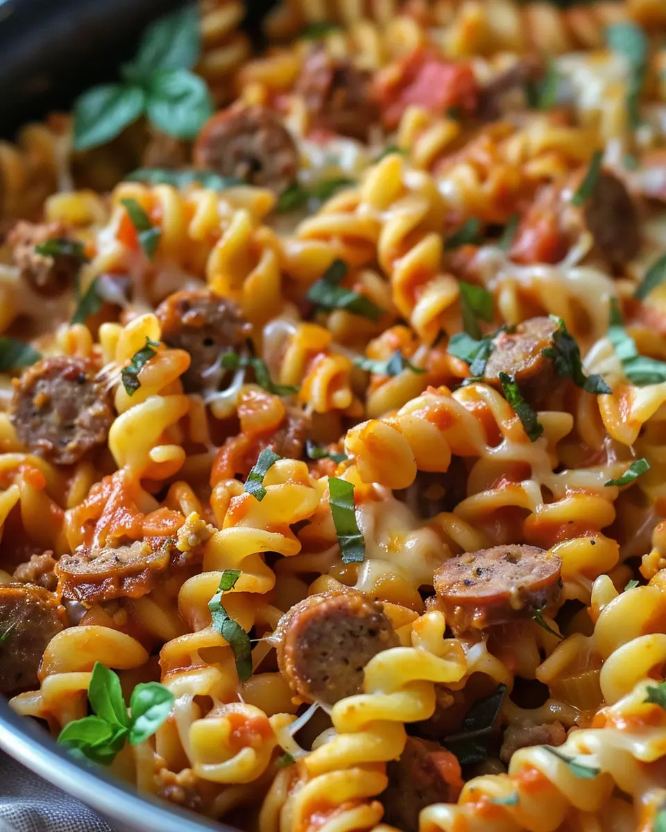 Absolutely! One of the best things about one pot cheesy sausage pasta is its versatility. You can easily swap out traditional sausage for alternatives like chicken sausage, turkey sausage, or even plant-based varieties. Each option will bring a distinct flavor to your dish, allowing you to customize it to your taste preference. If you’re looking to lighten it up, turkey sausage can reduce the overall fat content while still packing in flavor. Just keep in mind that cook times may vary, so adjust as necessary to ensure everything is cooked through.