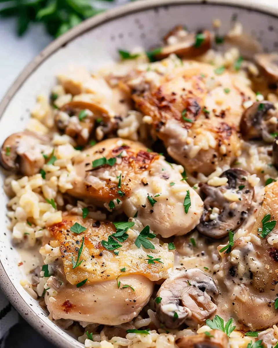 Indulge in the creamy goodness of One Pot Creamy Parmesan Chicken with Mushroom Rice, a delightful dish that combines rich flavors and convenience.