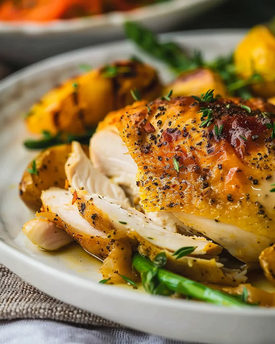 - Slice and serve: After resting, slice the chicken against the grain for added tenderness. Serve it with nutritious sides like roasted veggies or a fresh salad.