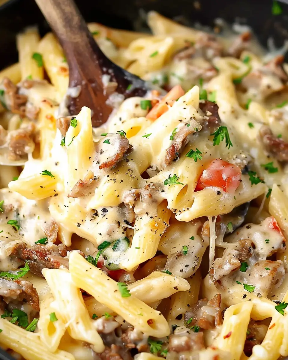 PrintPhilly Cheesesteak Pasta: Indulgent Comfort Food You’ll Love