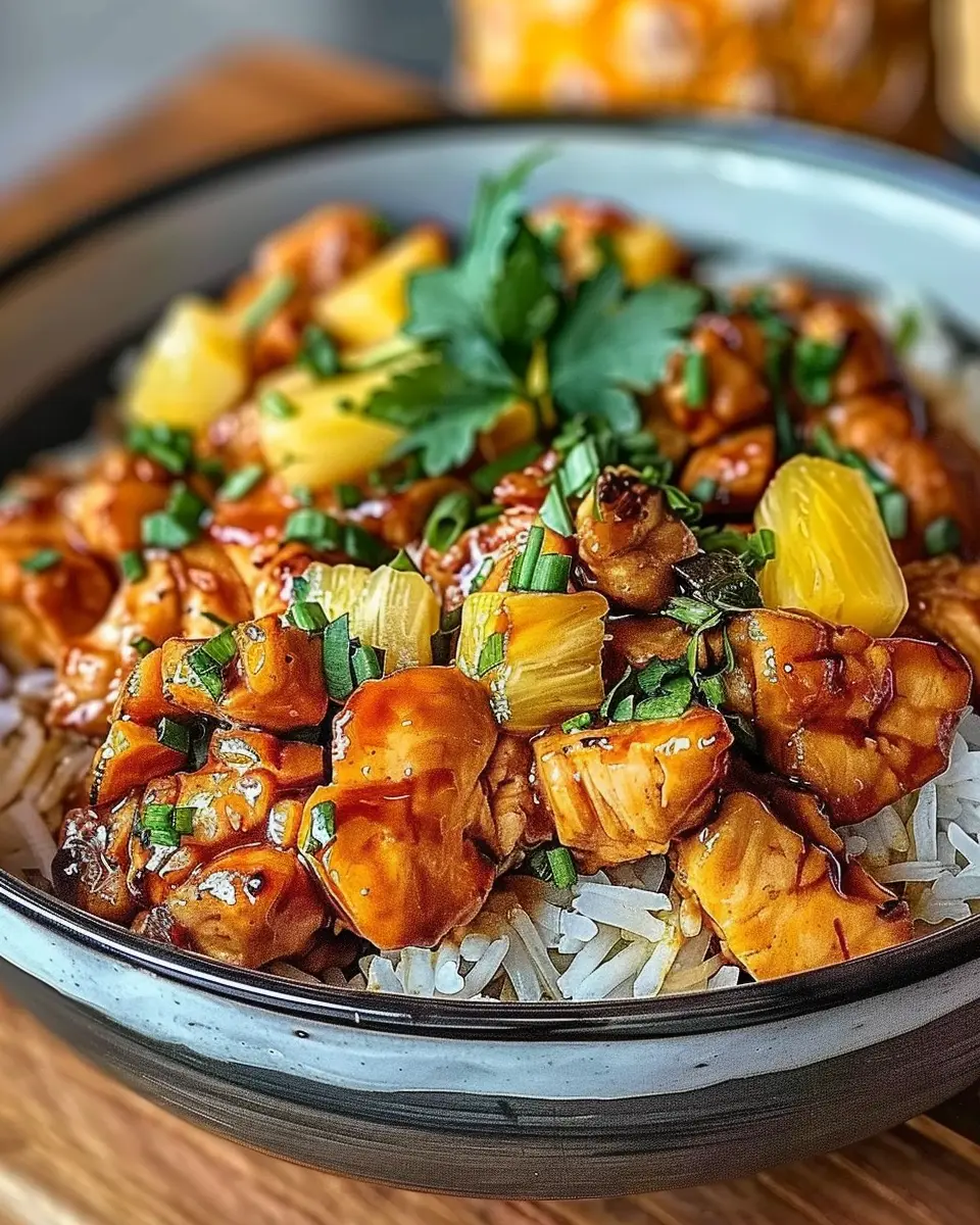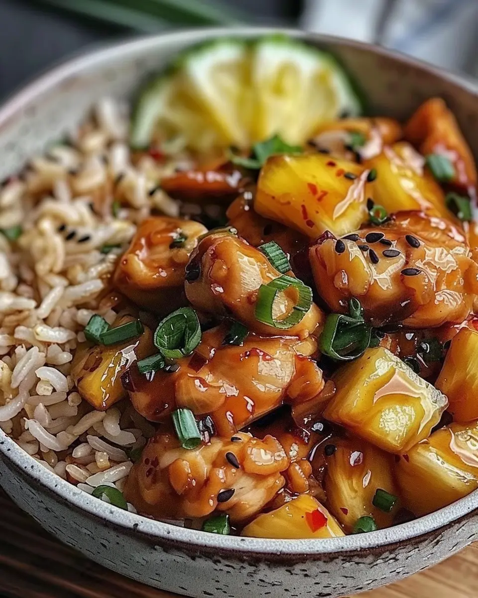 PrintPineapple Chicken and Rice: A Juicy Twist with Turkey Bacon