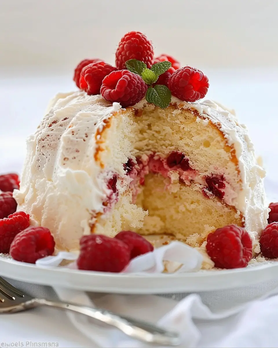 PrintRaspberry Angel Food Cake: Easy Recipe for a Light Delight