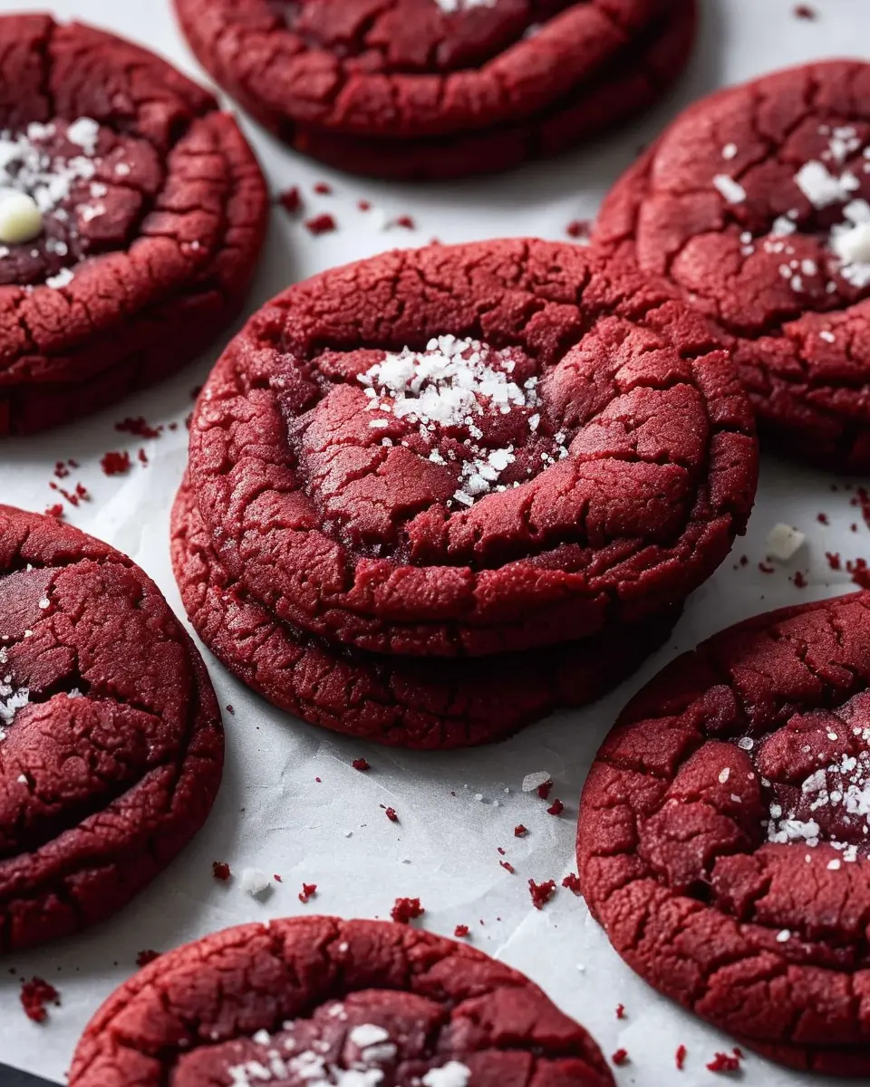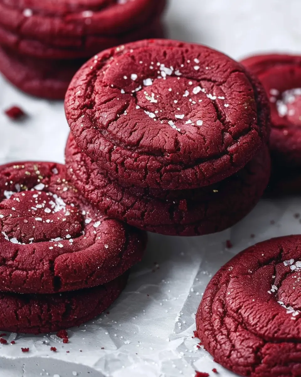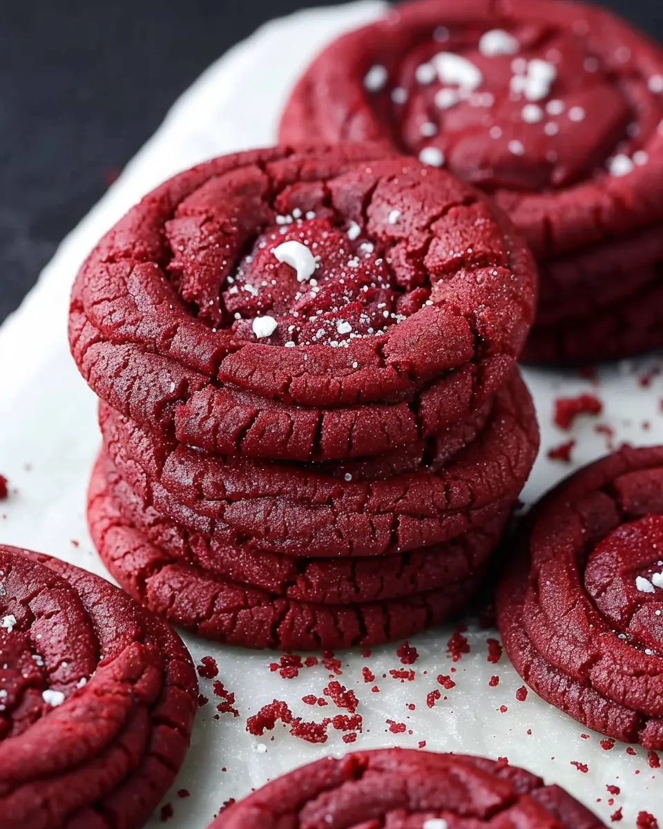 Deliciously soft and chewy red velvet cookies that are perfect for satisfying your sweet tooth.