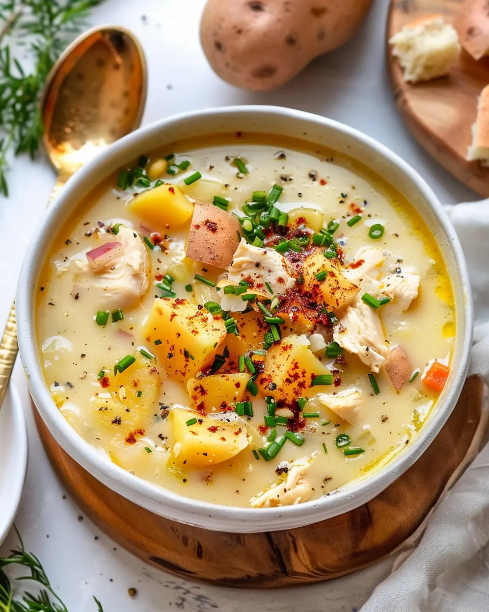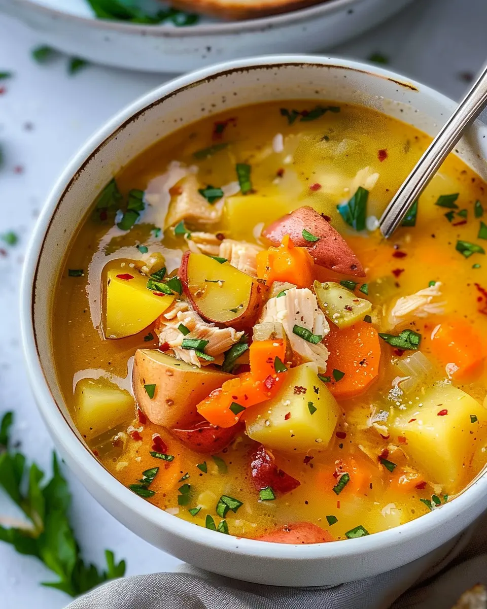 A warm and hearty soup that combines the goodness of red potatoes and chicken, perfect for a cozy meal.
