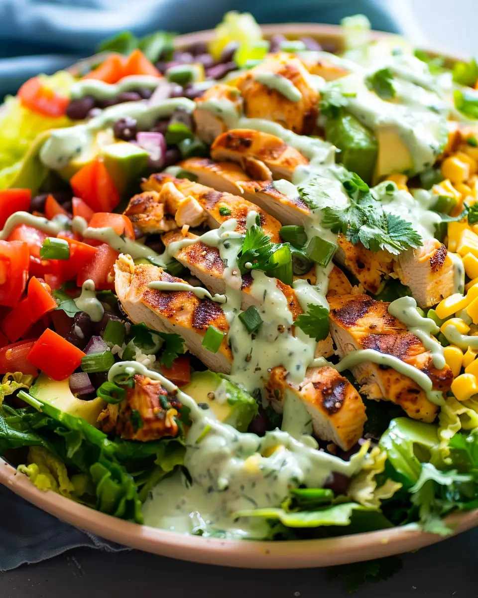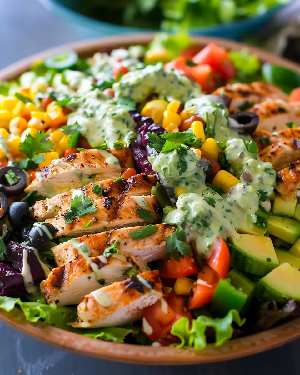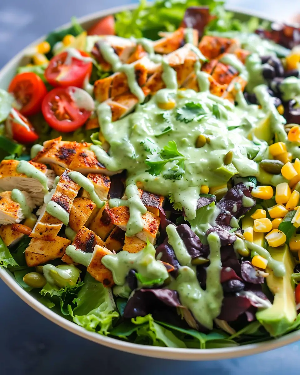 - Drizzle the creamy cilantro dressing over the salad and toss gently to combine.