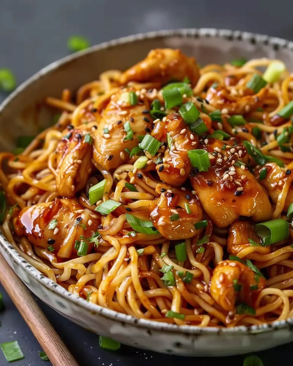 Sticky Garlic Chicken Noodles are a quick and tasty dish that combines tender chicken with flavorful noodles coated in a sweet and savory garlic sauce, perfect for busy weeknights.