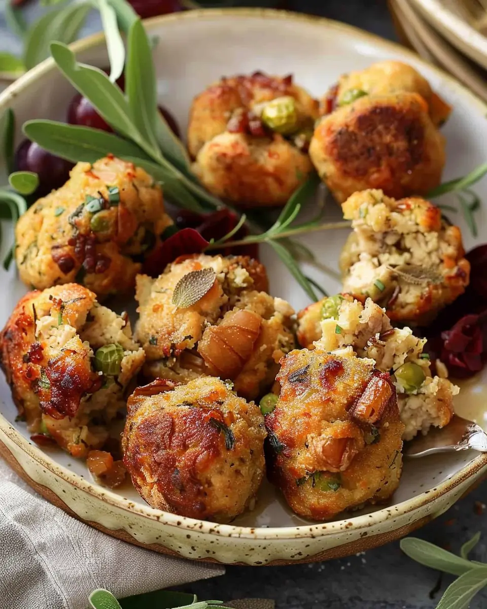Once baked, allow them to cool slightly before serving—if you can resist the aroma that wafts through your kitchen! These stuffing balls will surely impress your guests and might just become your go-to dish for any gathering.