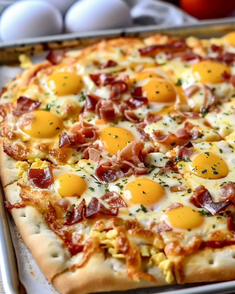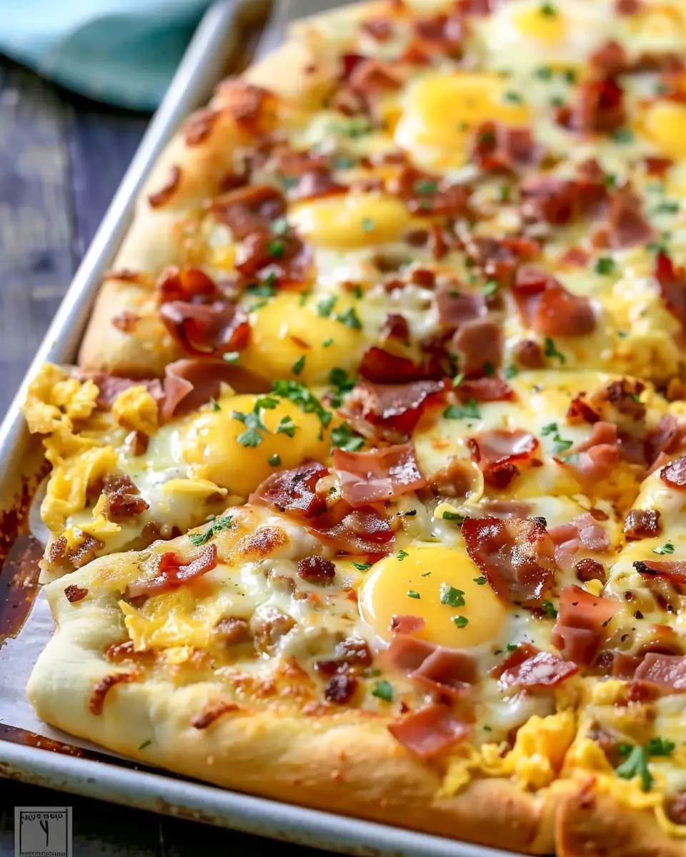 The Best Breakfast Pizza combines savory turkey bacon and chicken ham for a delicious morning treat.