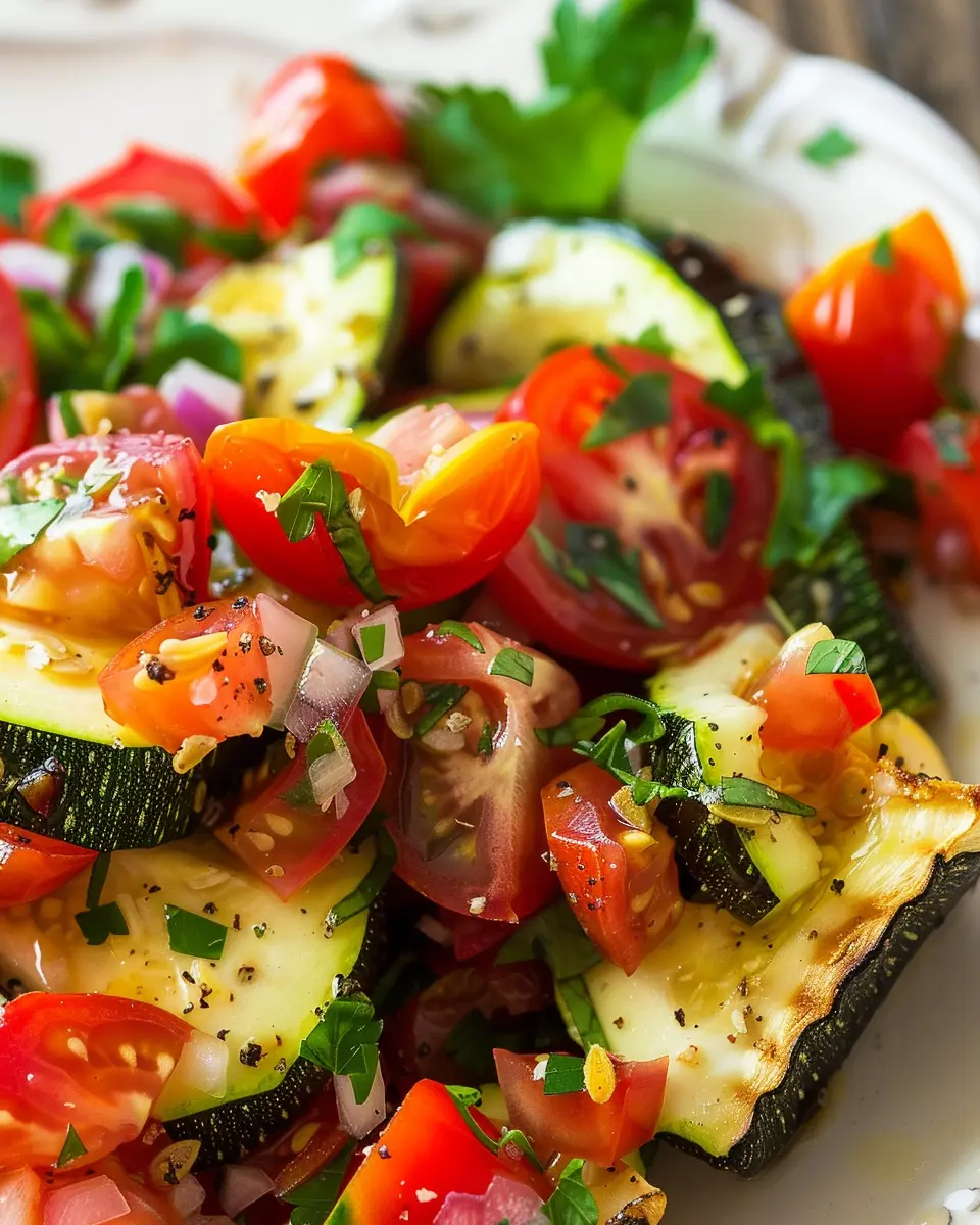 A refreshing Zucchini and Tomato Salad that’s simple to make and packed with healthy ingredients.